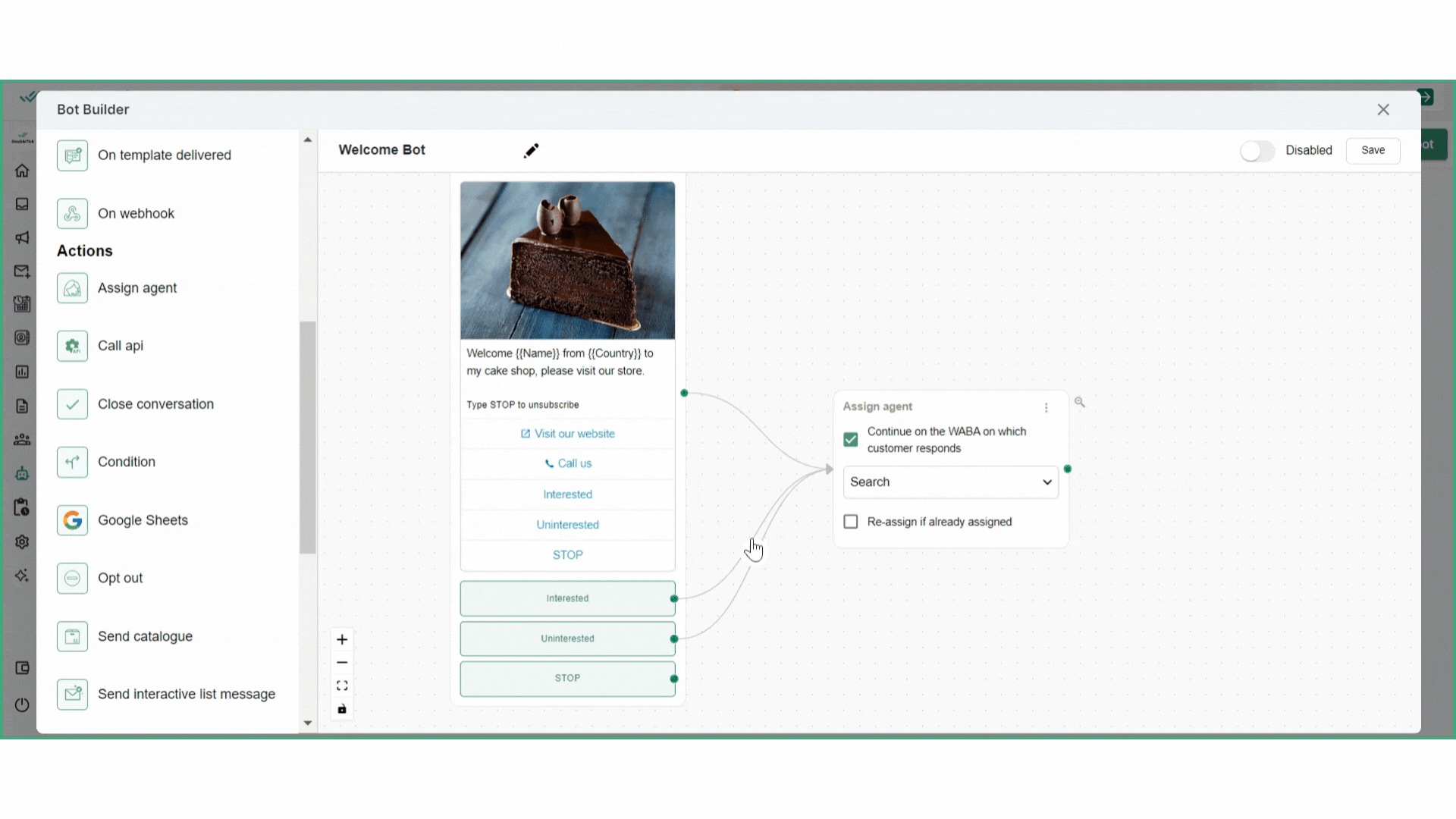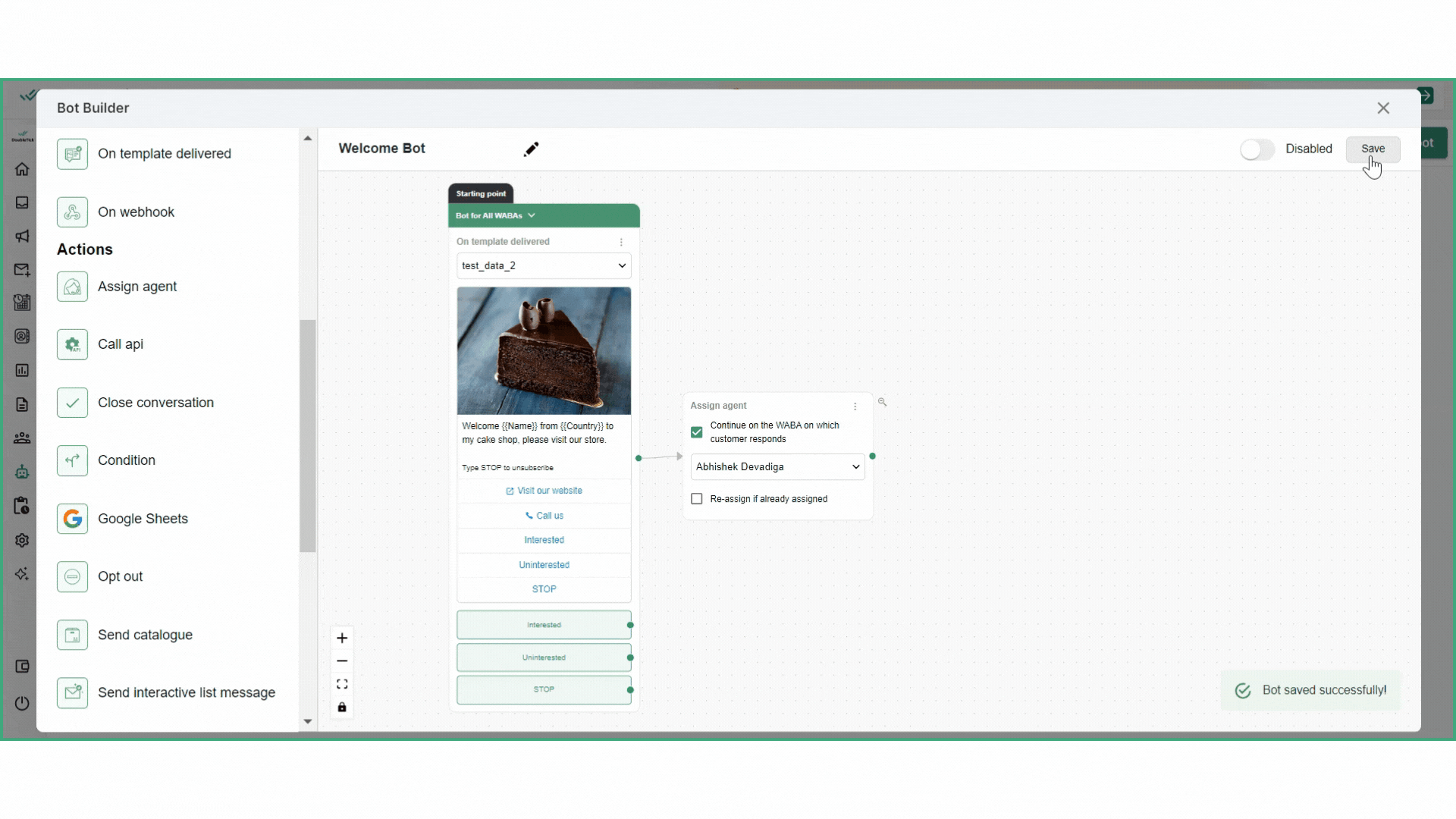 To save the bot, click on the "**Save**" button located in the top right corner