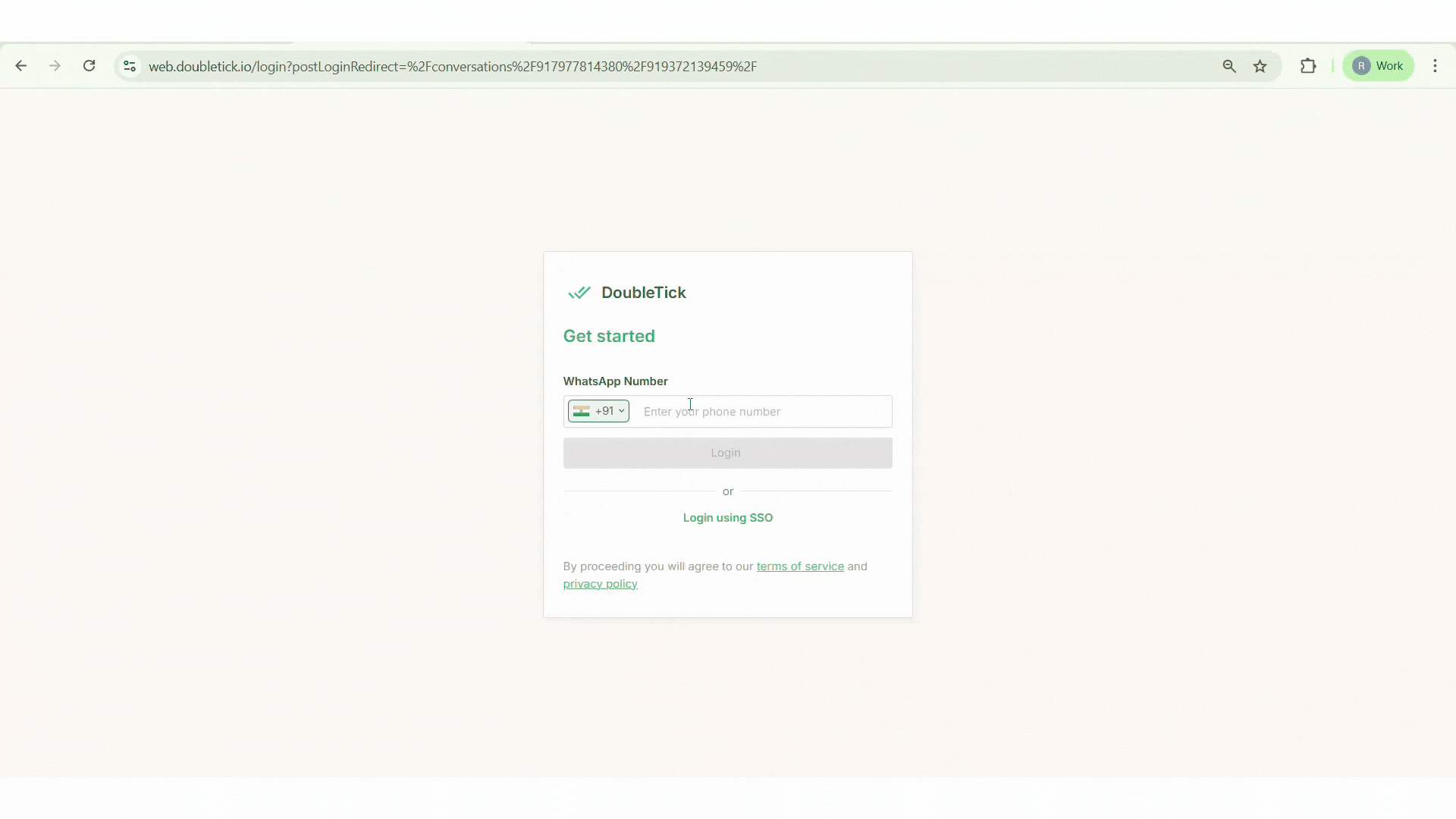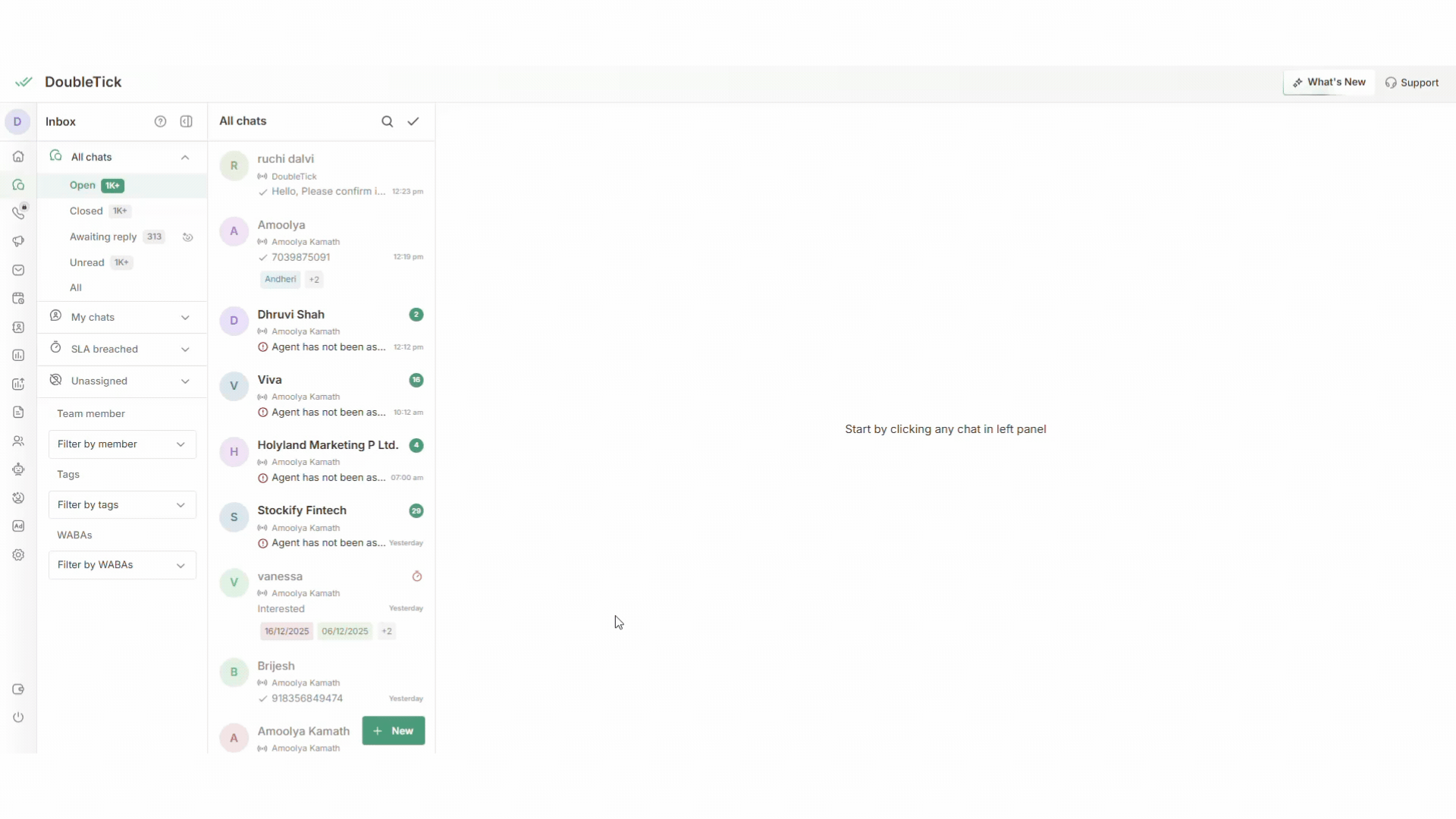 Once you log in to your DoubleTick account, you will automatically land on the **Chats** section.