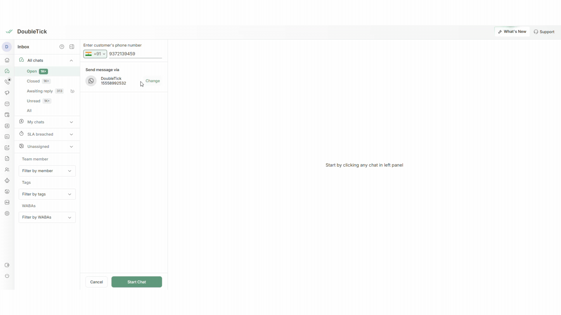 This guide explains how you can start a new chat with a customer directly from the DoubleTick dashboard.