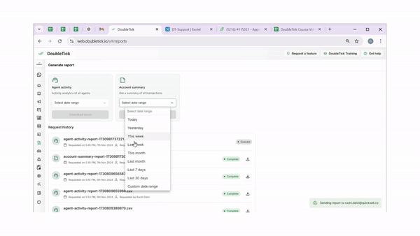 With this process, you can quickly access and review detailed reports on agent activities or account summaries, empowering you with insights to enhance customer support and improve account management.