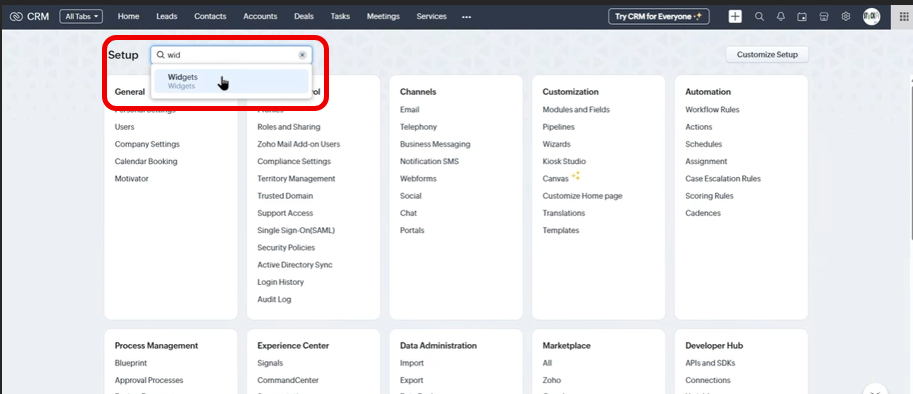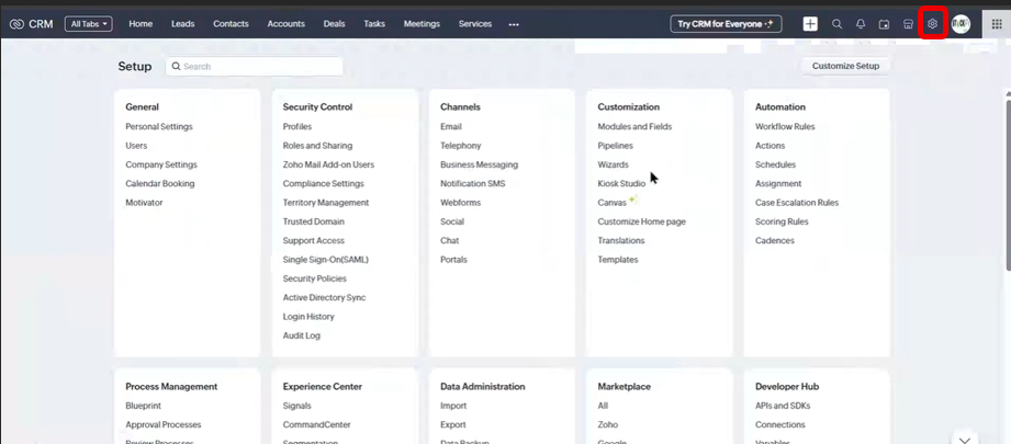 #### **Step 1: Open Zoho CRM Setup**