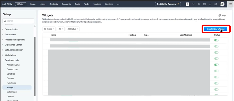 • Click **Create New Widget**<br>